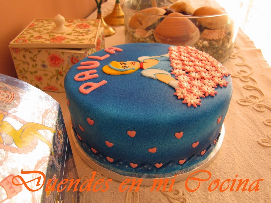 Hola chic@s esta tarta la he realizado para un encargo que me han hecho esta semana. Una de las invitadas es intolerante a la proteína de la leche de vaca con lo que no podía utilizar ni leche de vaca ni mantequilla ni nata (crema de leche), pufffff, qué dilema. Hice un bizcocho de vainilla con leche de soja, buenísimo y reacciona igual que la leche de vaca y la mantequilla la sustituí por una margarina holandesa con alto porcentaje en grasas, y genial ¡¡¡¡¡, el bizcocho buenísimo. Los rellenos les puse uno de mermelada, casera claro, de melocotón y una swiss buttercream con la misma margarina aromatizada con mermelada de melocotón. Al bizcocho le puse un almíbar de canela y limón. En fin, bueníiiiiiisisimo.