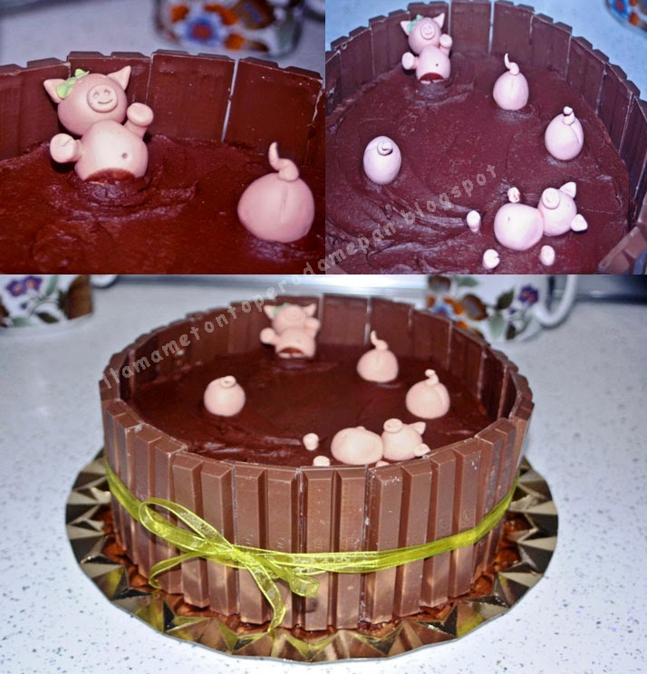 Para el relleno, utilicé dos botes de mermelada de arándanos, para evitar el exceso de chocolate, que ya lleva en la cobertura y con los kit kat. (podéis cambiarla por el sabor que más os guste)