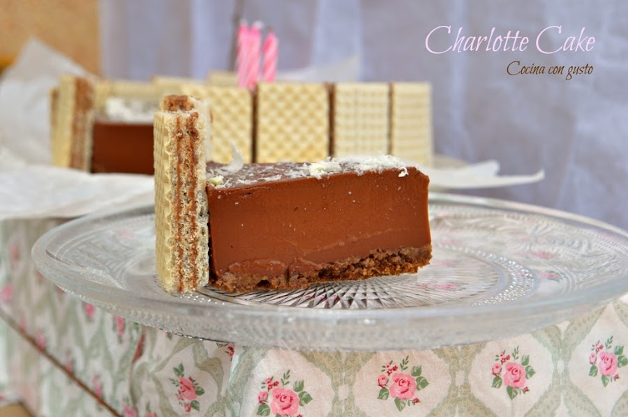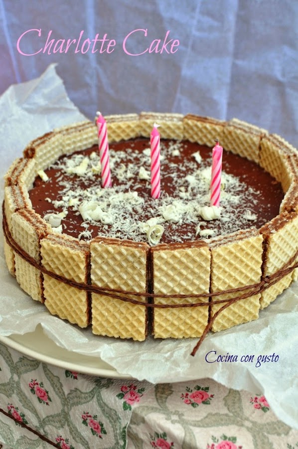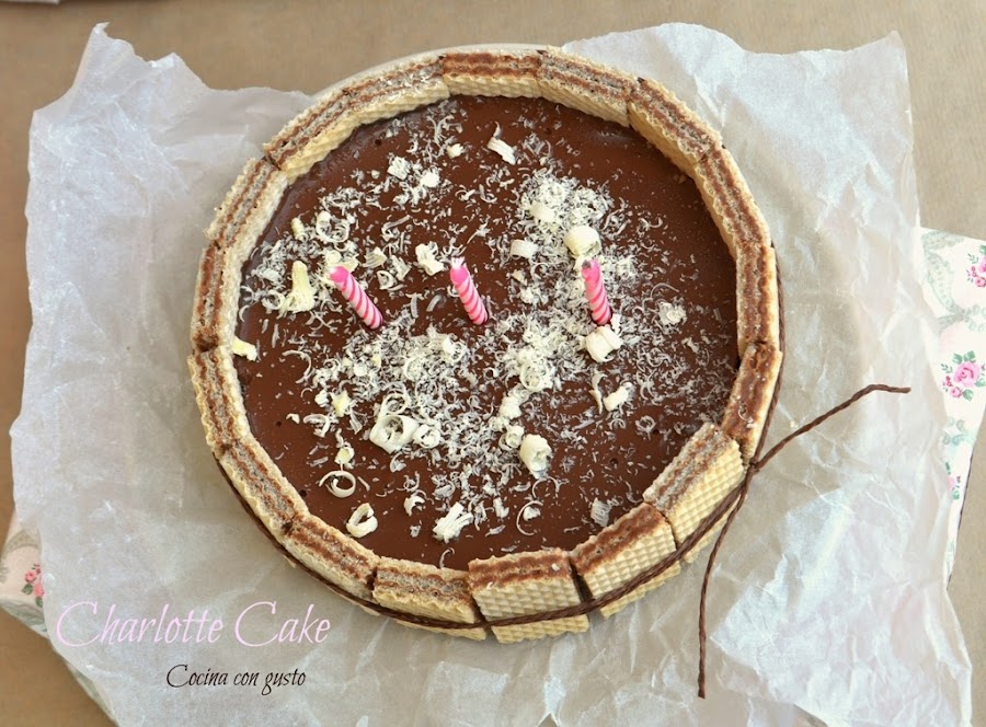 Ponemos las galletas de barquillo rellenas de chocolate alrededor de la tarta y ya tenemos nuestra Charlotte Cake lista para comer.