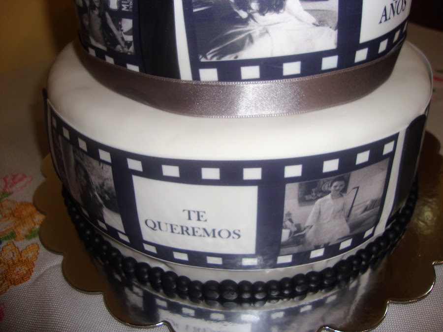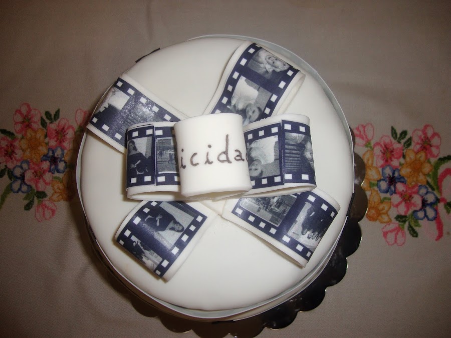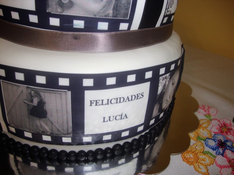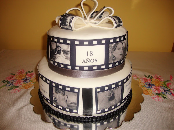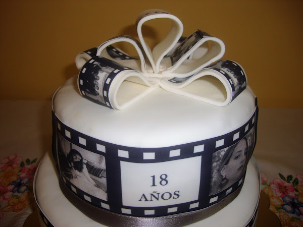 El lazo superior es de fondant con papel comestible impreso.