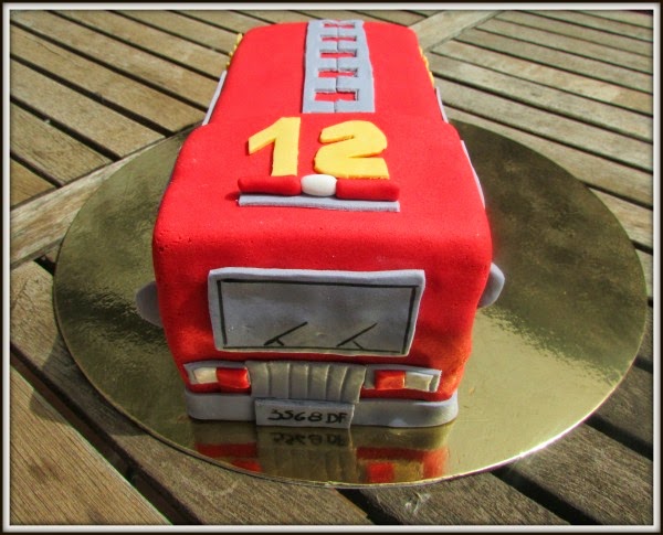 El pedido de hoy es para celebrar una ocasión muy especial. Una tarta en forma de camión de bomberos. Podréis pensar que es por un cumpleaños de un niño al que le chiflan los camiones de bomberos... pero no, es algo mucho más especial.