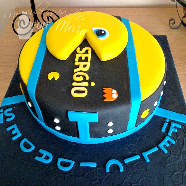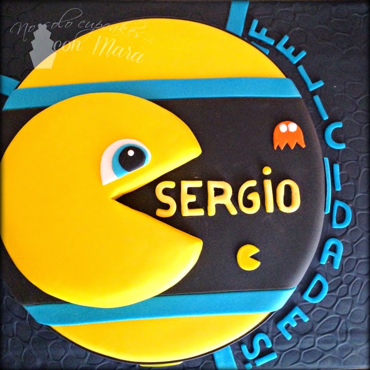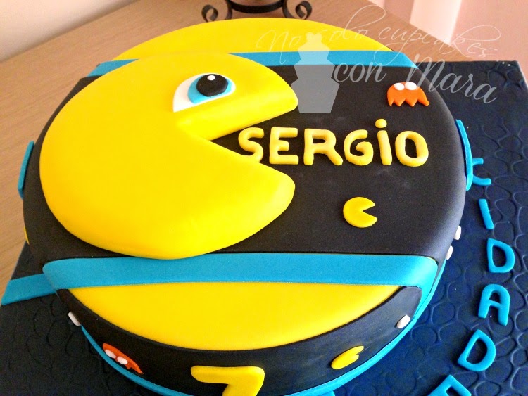 Hoy toca la tarta PACMAN o COMECOCOS que hice para el cumple de Sergio, hace un tiempo.