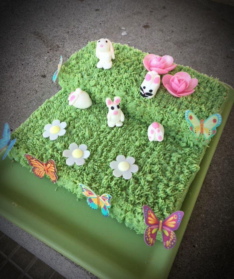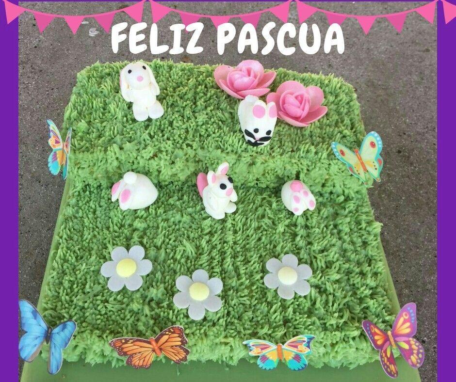 cuanto tiempo, espero que hayáis pasado una bonita pascua, a mi se me ha hecho realmente corta, aunque mis peques siguen de vacaciones! Estos días he hecho un pequeño taller con una amiga, su hija la apuntó sin que ella lo supiera a un concurso de tartas en su colegio, y me pidió consejo y ayuda. Yo le propuse que se viniera a mi casa y que la ayudaría pero que la haría ella, tipo taller de tarta!!! Le gustó la idea, además así podíamos ponernos al día Ella quería hacer una tarta con la temática de la pascua, yo le propuse un prado verde con conejos entrando y saliendo de sus madrigueras, una tarta con conejos de pascua.