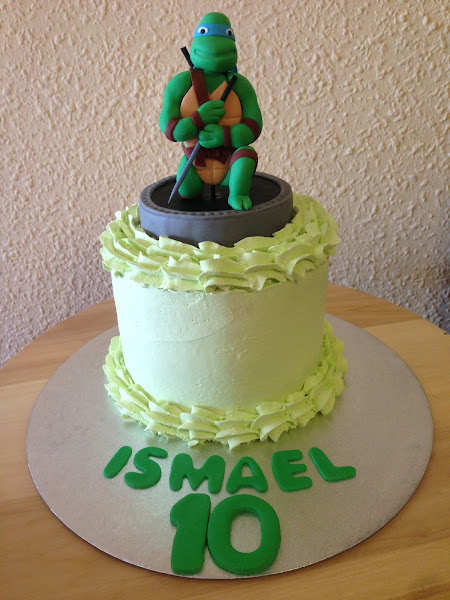 Tarta con crema pastelera y nata (crema de leche) de las tortugas ninja