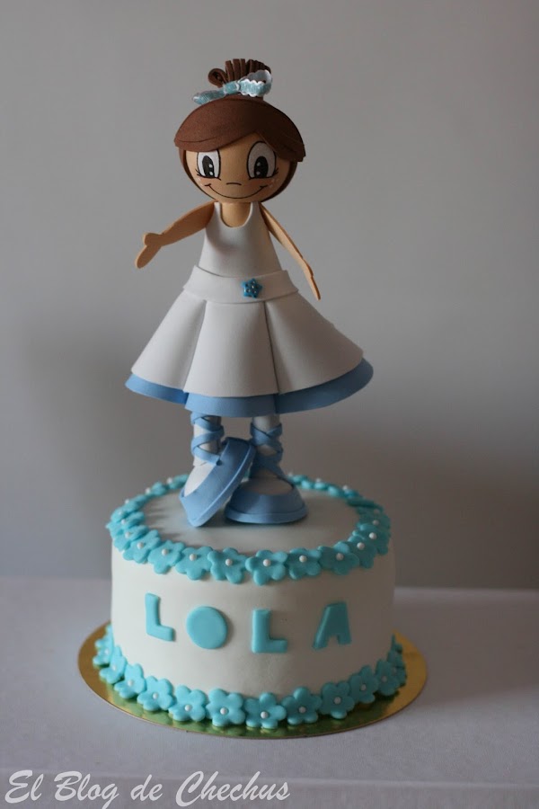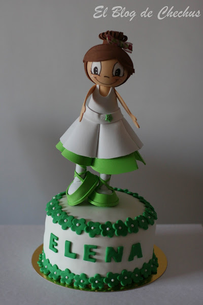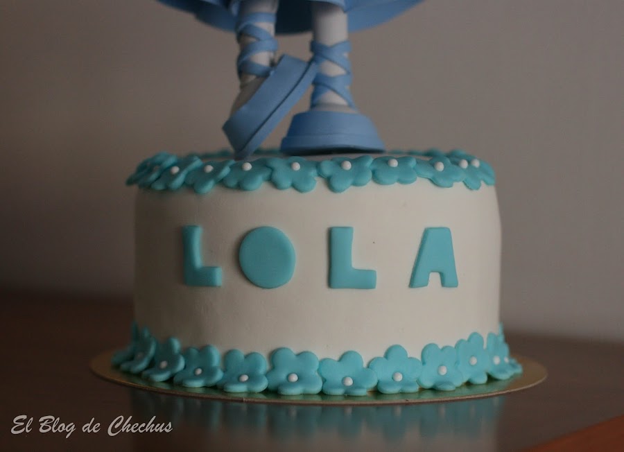 La tarta era mi clásica, y decorada de forma muy sencilla, con solo su nombre y unas pequeñas florecitas. Una en verde y otra en azul.
