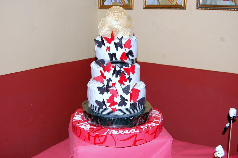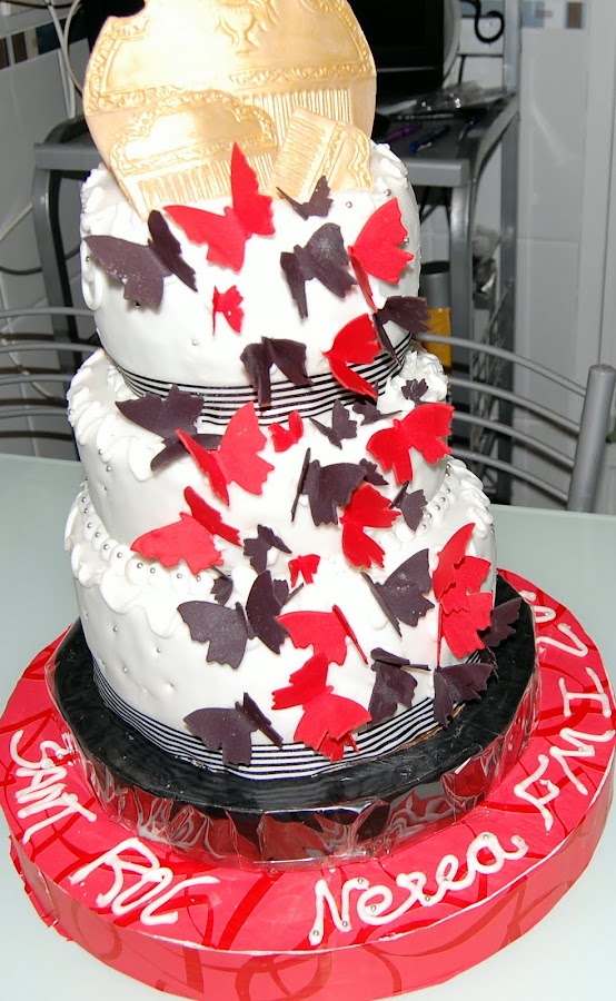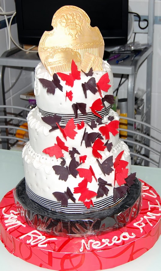 En la próxima entrada os pondré la receta del bizcocho, que era de chocolate y resulto muy rico y jugoso, estaba bañado con un almibar aromatizado con whisky y relleno con un ganache de chocolate blanco, receta, que también publicaré próximamente.
