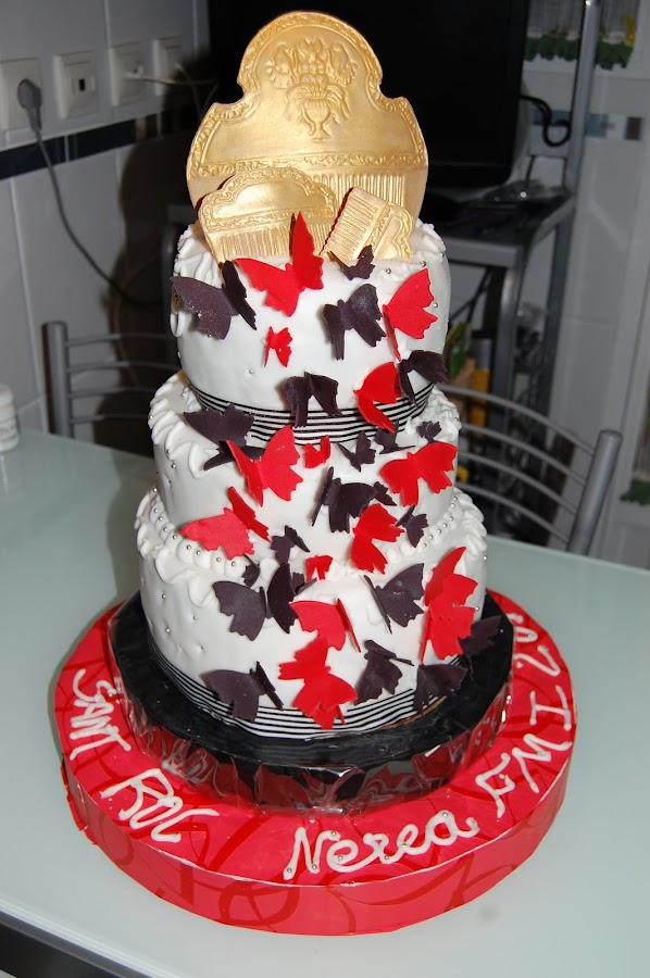 Esta semana he estado un poco liada y aquí el motivo de mi lío, una tarta hecha con mucho cariño para una personita muy especial. Nerea, este año es fallera mayor infantil de su comisión y el pasado sábado la proclamaron y sus papis prepararon una fiesta estupenda.