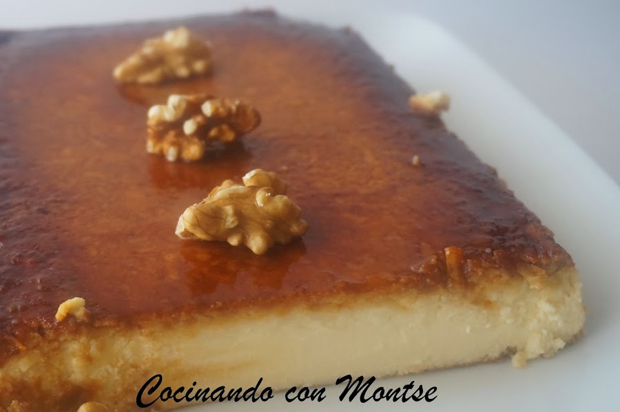Esta semana he preparado otra versión de la tarta de queso, me encantan!!! Pero hacía tiempo que buscaba una tarta que supiera bien a queso. Desde que estuve en Galicia ya hace unos año, allí probé una tarta riquísima, era un bizcocho pero tenía ese sabor del queso curado, estaba muy buena, pero no conseguí la receta, así que he ido probando. Esta que he preparado esta semana está muy buena, , el contraste del sabor intenso del queso con el dulzor del caramelo hace que sea una tarta original y muy buena, y acompañándola con unas nueces genial.