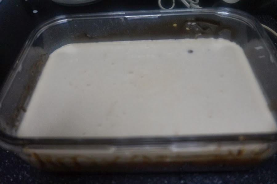 Por último echaremos la nata (crema de leche), mezclaremos todo bien y lo echaremos en el molde donde hemos puesto el caramelo.