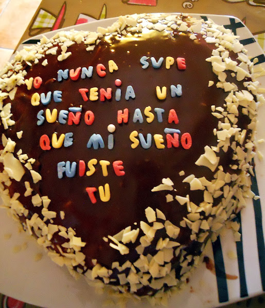 LA DECORACIÓN PUES A VUESTRO GUSTO, YO LE PUSE ESCAMAS DE CHOCOLATE BLANCO Y ESTA FRASE CON LETRAS DE CARAMELO QUE COMPRE EN LIDL. PODÉIS DERRETIR MAS CHOCOLATE Y PONERLE LETRAS....IMAGINACIÓN!!!