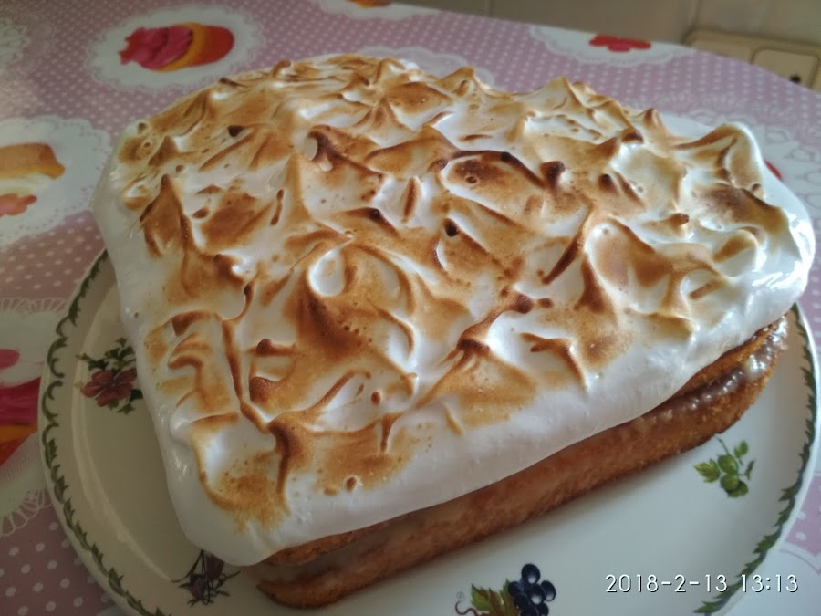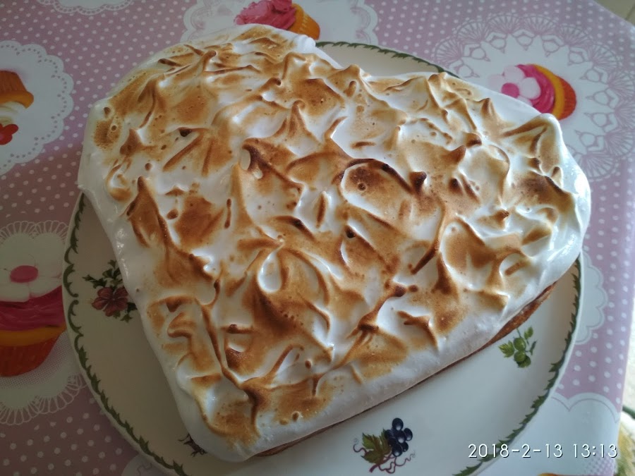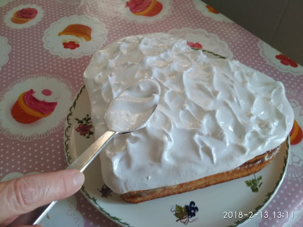 Se cubre la tarta con el merengue y con el dorso de la cuchara se le van haciendo picos para después dorarlos con el soplete.