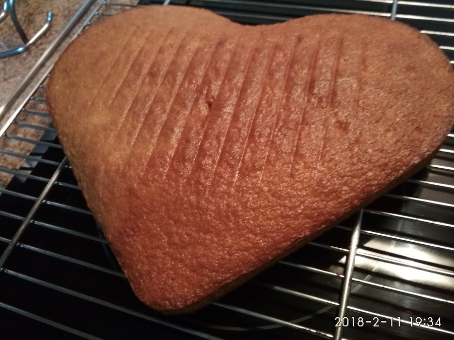 Yo pesé la masa, la dividí y la horneé en dos veces porque mi molde es bajito, así me quedaron 2 bizcochos iguales, pero se puede hacer de una vez y abrirlo para rellenarlo.
