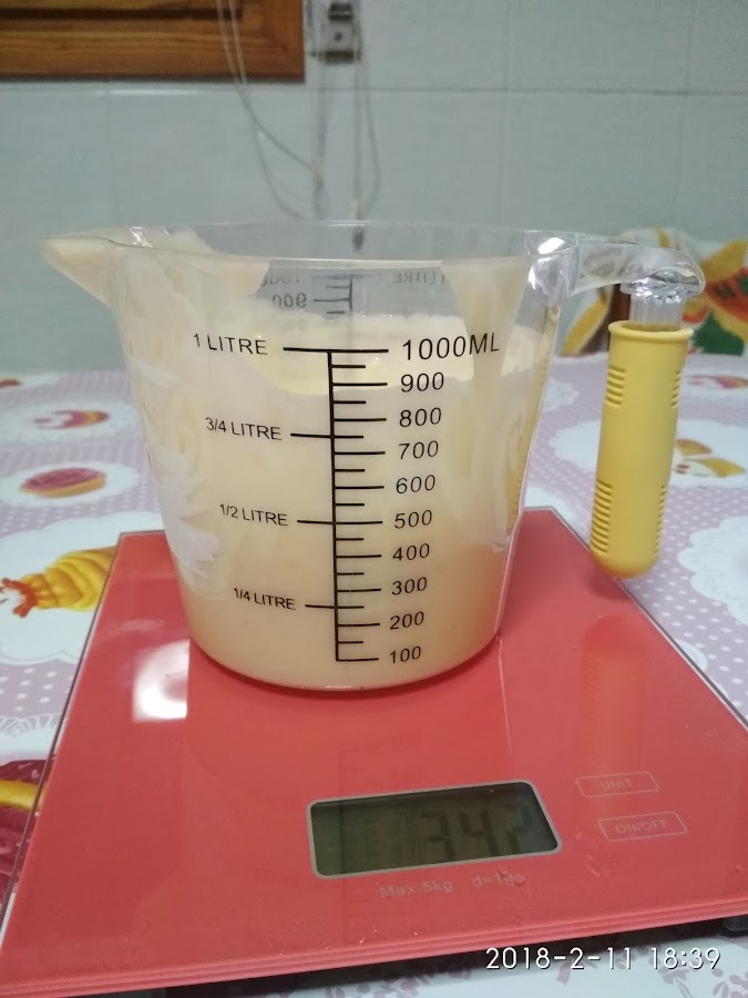 He preparado la masa del bizcocho y la he pesado para dividirla en dos y hacer dos bizcochos iguales para rellenarlos de crema.
