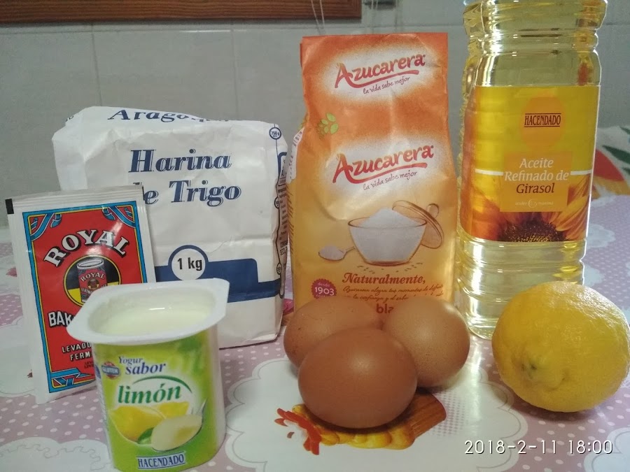 Poner los huevos y el azúcar en un bol y montar con unas varillas eléctricas hasta que sea una crema blanquecina y haya doblado su volumen. Añadir el yogur, la ralladura y el aceite e incorporar.