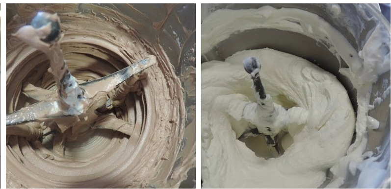 Colocamos la mariposa en el vaso y añadimos la mezcla de nata (crema de leche) y chocolate.Montamos a velocidad 3 y 1/2 con cuidado de no pasarse,ya sabéis que la trufa monta más rápido que la nata (crema de leche).