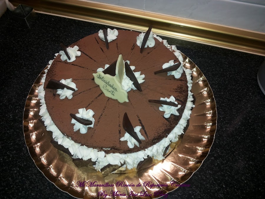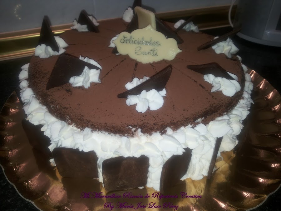 Para comenzar bien la semana os traigo esta fantástica tarta cremosa de chocolate, que le hice a mi amigo Santi por su cumpleaños la semana pasada. Poneros el delantal que empezamos...