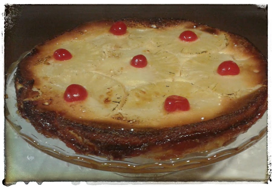 Adornar las rodajas de la piña con unas guindas.