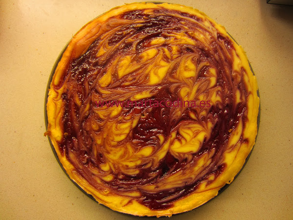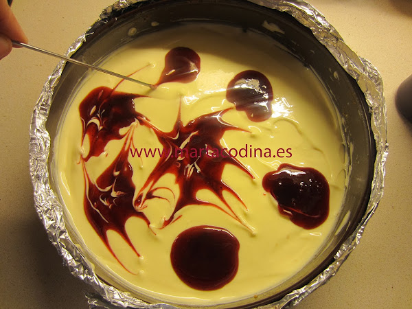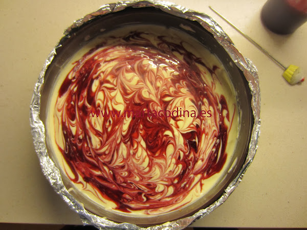 Repasta la mezcla de fresas y use una broqueta de metal para hacer los remolinos.