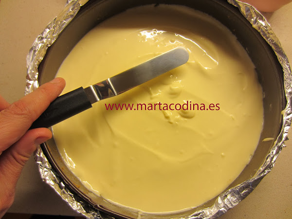 Forre los lados del molde con papel de aluminio para asegurarnos que no entre agua dentro de la tarta
