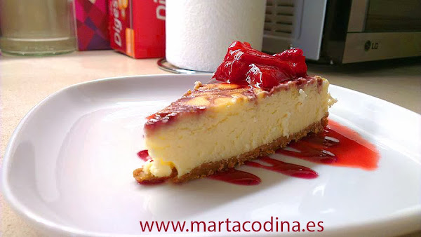 Ponga en la nevera como mínimo 2 horas. Con la ayuda de dos palas de cocina, deslizar por debajo y desmoldar. Pasar el pastel a un plato y conservar en nevera.