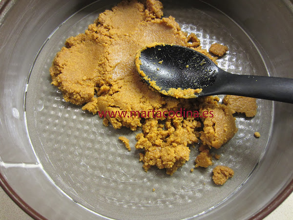 En una picadora, pique las galletas. Derrita la mantequilla en un cazo a fuego suave, pero que no se dore.