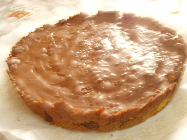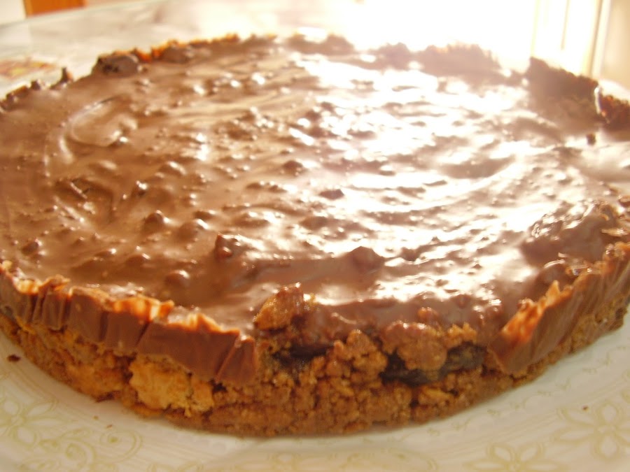 Fundir el chocolate en el baño maría o microondas y extender por encima de la base de galleta.
