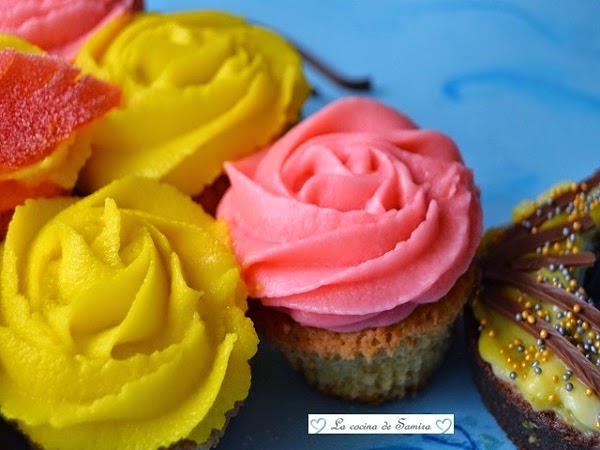 El cupcake rosa de la cola debería haber ido en el centro, pero me equivoqué y cualquiera le decía al amarillo que se quitara de ahi, se negó en rotundo jaja.....y yo por no discutir, ahí lo dejé , ainsss , quien dijo que eso de hacer rosas es fácil ?... qué fatiguitas .....enfin.......