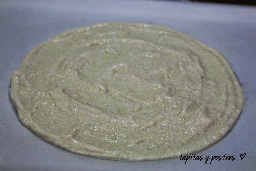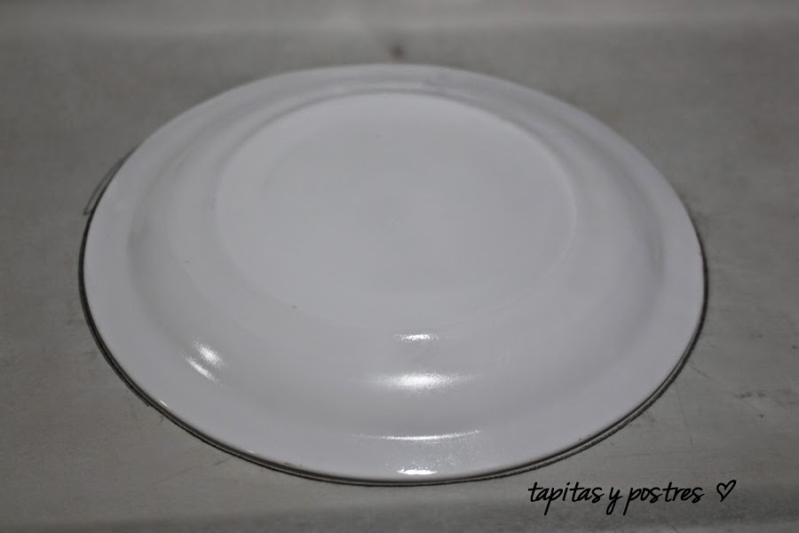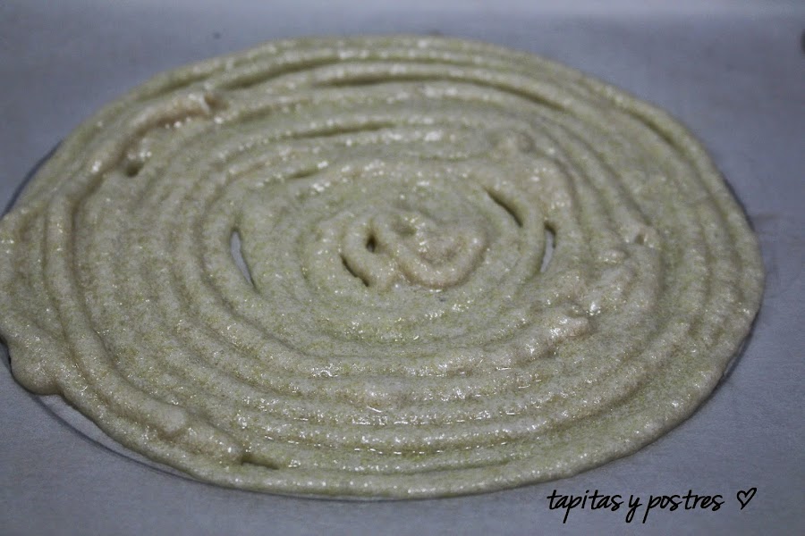Hacemos churritos sobre el círculo. Yo lo hice con una manga pastelera.