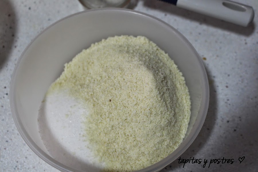 Mezclar 125 grs. azúcar con las almendras molidas. Añadir esto con cuidado y con movimientos envolventes a las claras montadas.