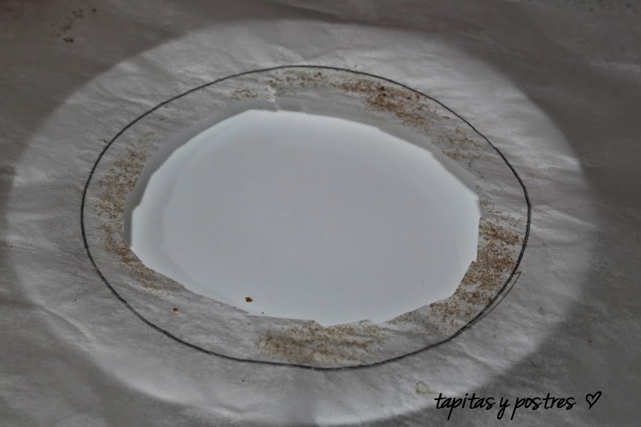 En un papel vegetal dibujamos un círculo que tendrá el tamaño de nuestra tarta. Lo hacemos dos veces.