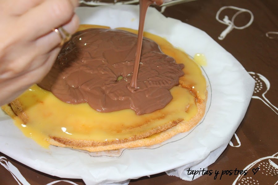 Una vez todo enfriado se monta la tarta de la siguiente manera: