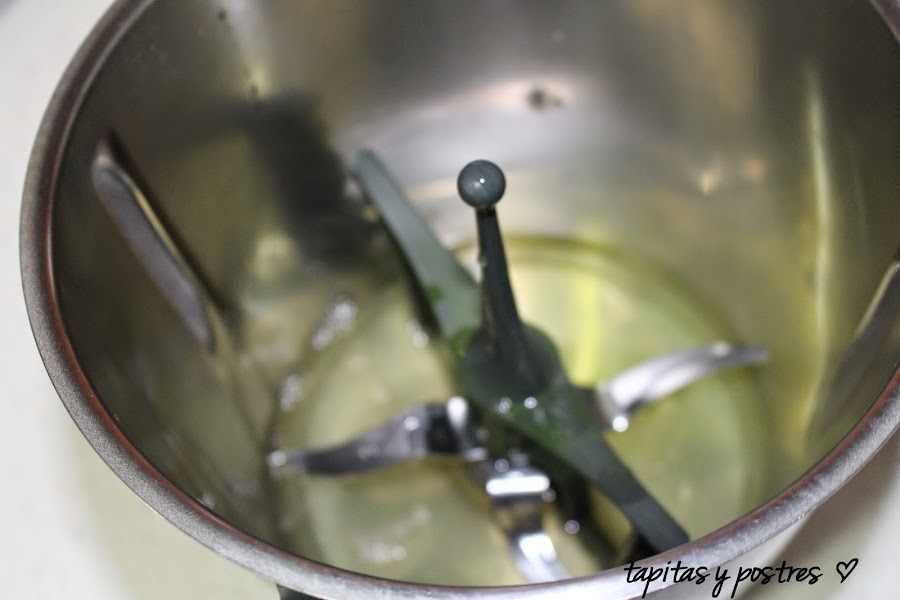 Separamos las claras de las yemas y las ponemos en el vaso, que tiene que estar limpio y muy seco.