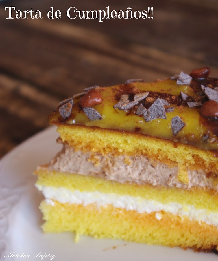 Aun que pongo pocas tartas la ocasión lo merecía. Pues un cumpleaños sin alguna dulcería, no es cumpleaños. Así que preparé una tarta de tres pisos y una cena especial para esta noche que ya os iré mostrando. Vamos con la receta!!