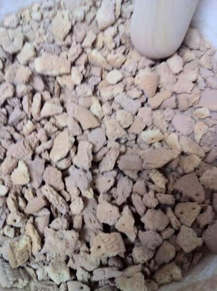 Empezaremos machacando el paquete de galletas Maria. Bien lo podeis hacer en la picadora, batidora, o con un mortero.