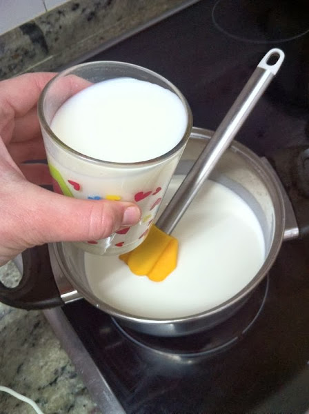 Con mucho cuidado de que no se nos pegue al fondo, rascamos bien y no dejamos de remover. Ya sabéis que la leche enseguida se agarra.