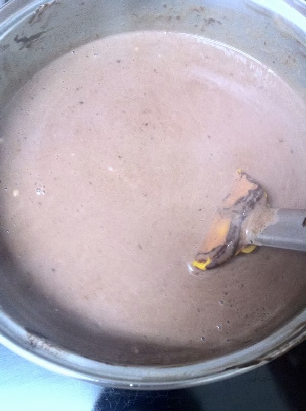 Fregamos bien el cazo, para que no quede ningún resto de chocolate con leche y empezamos.