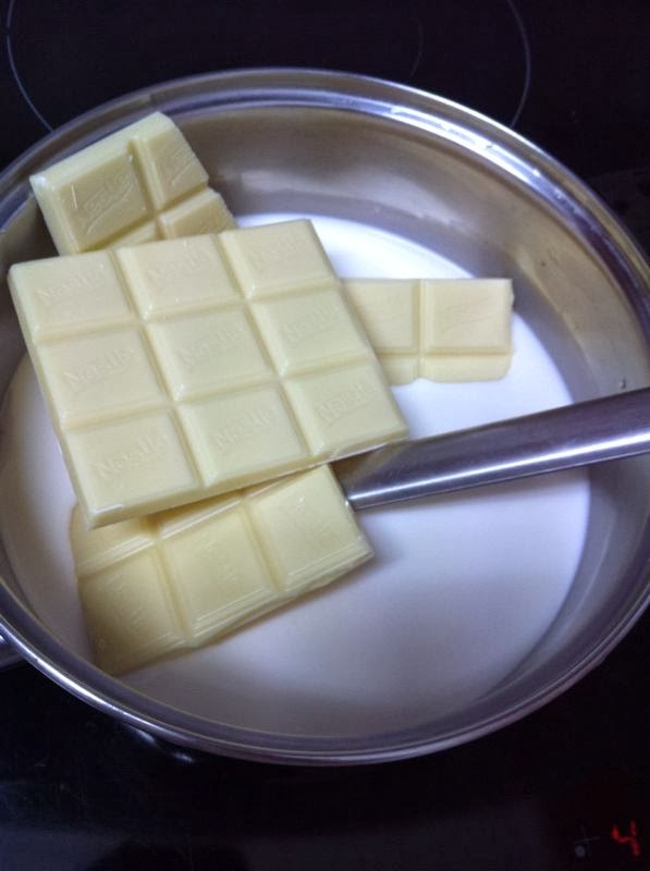 Mas de lo mismo. La nata (crema de leche) junto con la leche y los 150 gr de chocolate blanco.
