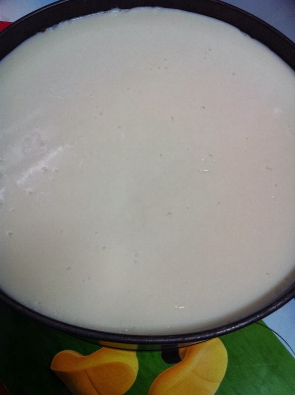 Cuando este bien unido, lo pasaremos al molde, y repartiremos bien la mezcla por toda la base.