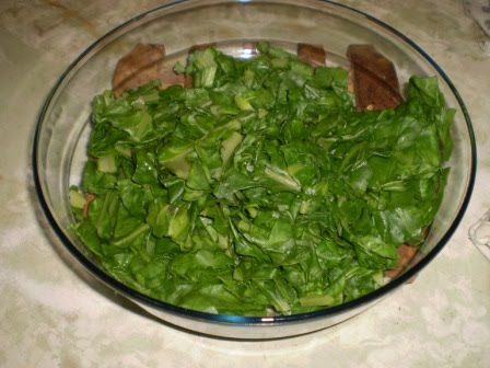 Cocinar las acelgas y los zapallitos. Yo lo hice en el microondas. 4 minutos las acelgas (sin el tronco o pencas) y 6 minutos los zapallitos (pelados y cortados).