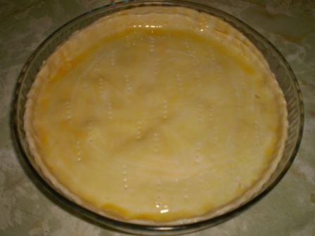 Tapamos con la otra masa y pincelamos la tapa con una yema. Con un tenedor pinchamos un poquito para que salga el vapor.