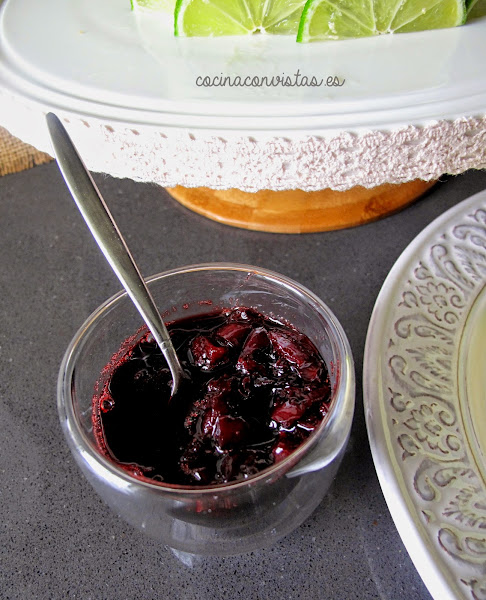 TARTA DE AGUACATE, LIMA Y QUESO CON SU COMPOTA DE CEREZAS