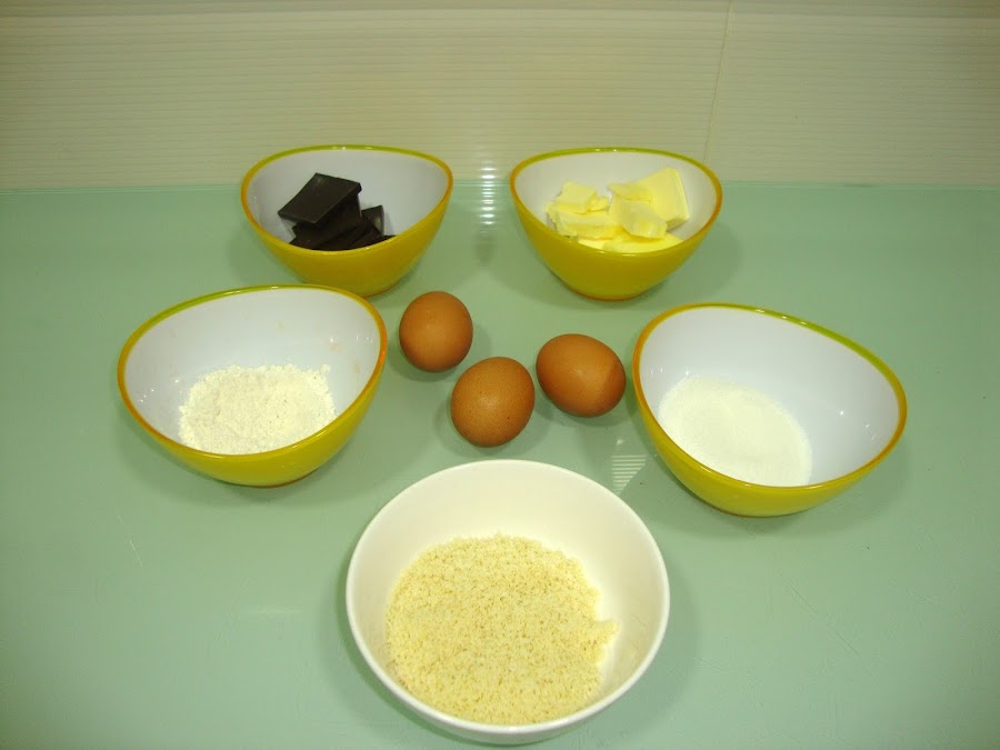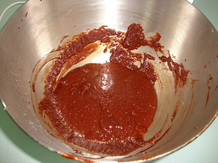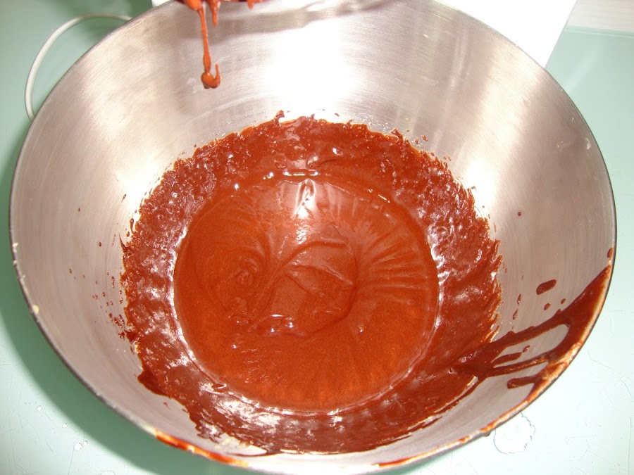 Posteriormente se le añade el chocolate fundido con la mantequilla y finalmente la harina de trigo y la de almendra.