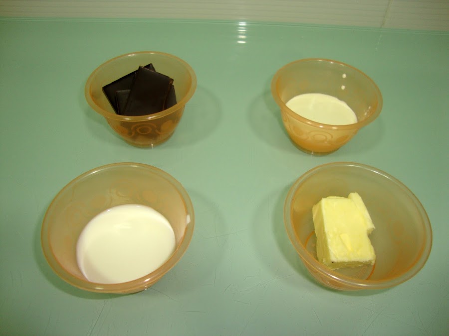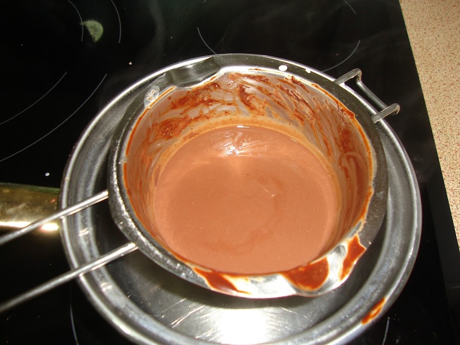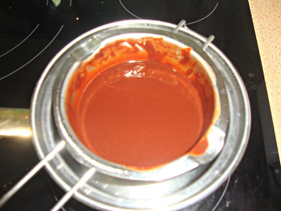 Se pone en un cazo el chocolate con la mantequilla y se funde al baño María y se reserva.