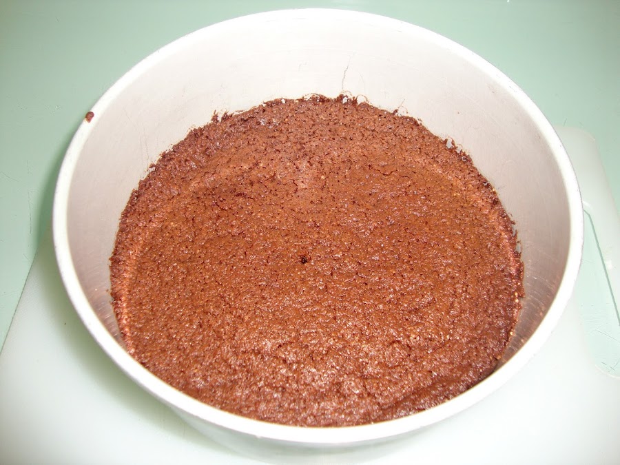 Lo mejor es hacerlo en un molde desmontable ya que luego le vamos a poner una cobertura de chocolate y así simplemente luego se le añade la cobertura y cuando está frío se quita el borde y ya está presentado. (Yo esto lo pensé luego y lo hice en un molde normal)