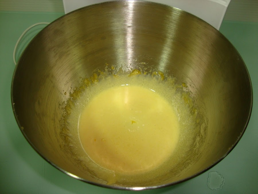 En un cuenco se ponen las yemas con el azúcar y se bate hasta que la mezcla quede blanquecina y el azúcar esté disuelto.