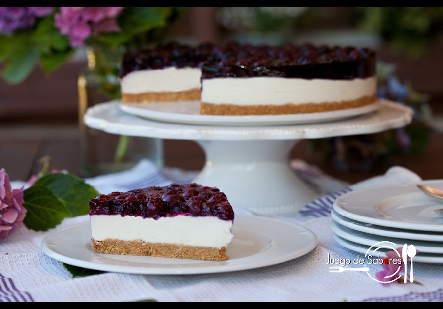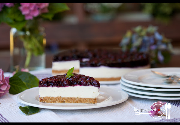 El aburrimiento es un mal consejero. Le das vueltas a la cosa, piensas, piensas y al final te metes en la cocina para matar la tarde y haces una tarta como la de las fotos. Pero tarta y bikini son incompatibles. O luces tipo o haces ostentación manifiesta de todas y cada una de las tartas, pasteles o helados que te has comido a lo largo del año. Tu mala conciencia hace que busques una tarta ligerita para pasar la tarde. Por ejemplo, ésta de arándanos porque has leído no sabes dónde que este fruto del bosque tiene pocas calorías, contiene antioxidantes, combate el colesterol y no sé cuántas cosas positivas más. Total, que estas bayas en forma de globitos de color violeta con un sabor entre ácido y dulce son la leche, la pera, la repanocha. Pero claro, nadie te ha dicho que en esta tarta los arándanos son la guinda, el adorno. Y todo lo que hay debajo de los arándanos, ¿qué? Olvidemos el bikini. En el peor de los casos ya me pondré un pareo, para disimular.