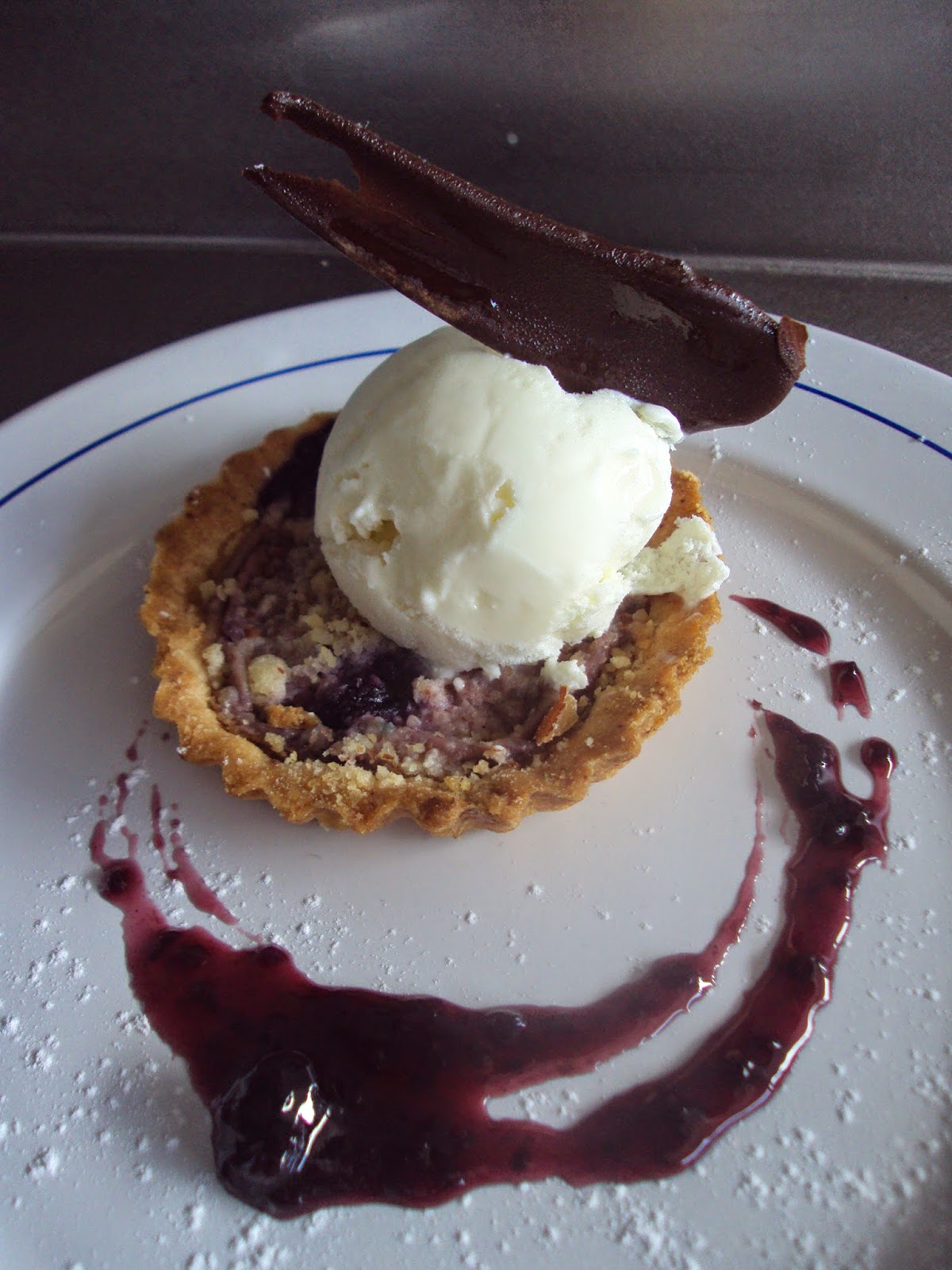 Mezclar con la crema y rellenar las bases de masa sable pre cocidas, luego cubrimos con un crumble de almendras y terminamos de cocinar.