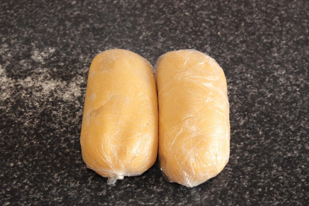 En un bol amplio mezclamos la harina, la sal, la levadura y el azúcar. Incorporamos la mantequilla y mezclamos. Agregamos el huevo y seguimos mezclando. Pasamos la masa a la encimera y amasamos hasta que los ingredientes queden bien integrados. Dividimos la masa en dos, envolvemos con film de transparente y llevamos al frigirífico por lo menos unas dos horas para que endurezca. Pasado el tiempo, sacamos del frío, retiramos el film de uno de los rulos y amasamos suavente para que se ablanden. Espolvoreamos con un poco de harina la encimera, colocamos el rulo de masa y estiramos con un rodillo, que nos quede una plancha de medio centímetro aproximadamente.