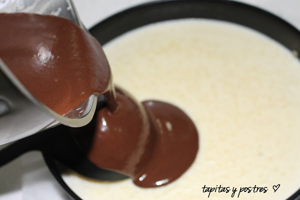 Vertemos sobre el molde donde está la base de galletas, y dejamos enfriar hasta que cuaje.