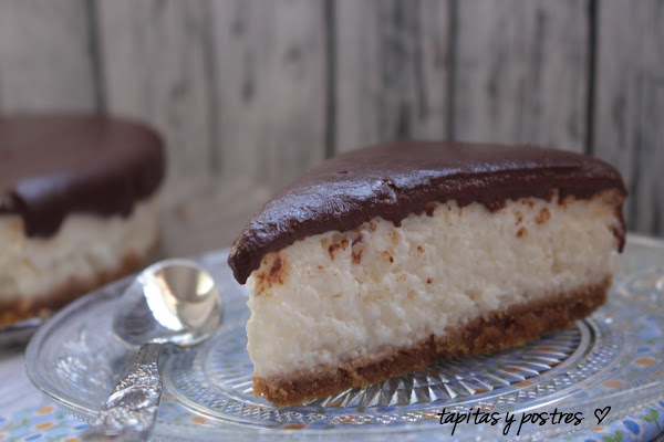 Y lo vertemos sobre la tarta. Aseguraros que está bien cuajada. Dejamos enfriar y a la nevera unas horas.